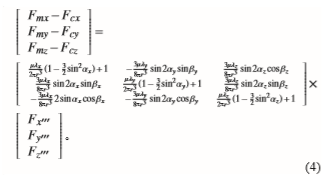 假设将导航载体产生的干扰磁场等效为一个磁偶极矩M,根据文献[6],磁矩M在传感器所在位置产生的感应磁场三分量为: