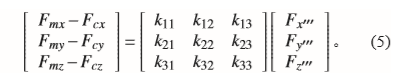 系数矩阵中的9个常系数k11,k12,k13,k21,k22,k23,k31,k32,k33在短时间内不会随着载体的姿态和位置而发生变化。式(5)中有3个独立方程,每个方程有4个常系数,相当于4元方程,因此,至少使载体处于4种方位姿态,并测量各姿态下地磁场三分量,加上载体所在位置地磁背景场和实时角度后,即可解得12补偿系数。