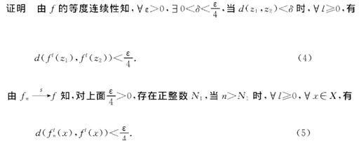 定义4设(X,d)是度量空间,f:X→X连续.若对任意的ε>0,存在δ>0,当d(x,y)<δ时,∀m≥0,有