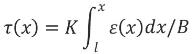 假设杆体与钻孔间的间隙为定值,则剪应力同杆体与孔壁间相对位移成正比,则x点处的粘结力[5]: