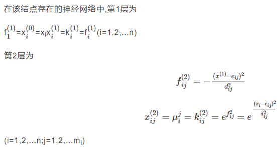 模糊神经网络中,若结点位置为第p层、第j个位置的结点,则对于该结点存在以下关系,即