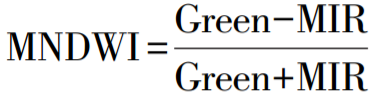 各水体指数在水体信息提取方面都取得了较好的效果,但是每种指数方法都有其局限性与适用性。适用于该研究区域地形的应用较为广泛的主要是MCFEETERSSK[16]提出的归一化差异水体指数和徐涵秋构建的改进型归一化差异水体指数。NDWI法只考虑了植被因素,却忽略了土壤/建筑物这一重要地类,通过NDWI法提取出来的水体信息因为绿光反射率高于近红外波段,往往造成土壤/建筑物与水体信息混淆。徐涵秋[17]针对该问题提出了改进的归一化差异水体指数MNDWI法,在归一化差异水体指数分析的基础上,对构成该指数的波长组合进行了修改,MNDWI比NDWI更好地揭示水体细微特征。基于上述认识并结合区域内地形情况,采用改进的归一化差异水体指数法进行水体的提取。改进的归一化差异水体指数MNDWI模型为