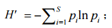 式中,S为种类数;W为总渔获质量(g);pi为i种鱼占总渔获质量的比例。