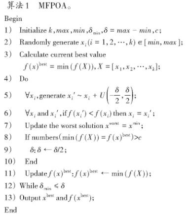 MFPOA的搜索结构简单,作为优化问题求解的一种基本的搜索框架,能够衍射出很多基于均匀分布为采样方式的算法。未来的工作将重点对算法的改进和算法间的联系进行深入研究,找出算法在不同应用上的优势。