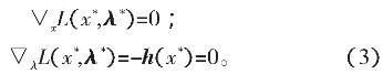 其中,乘子向量λ=(λ1,λ2,λ3,…,λl)T。设问题(1)的KT点(局部极小点)是(x*,λ*),由最优性条件可得: