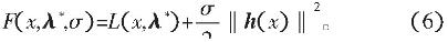 选取一个再适当改变λ的值,求得新的,直到得到满足要求的λ*和x*。具体地说,在第k次迭代求出无约束子问题minF(x,λk,σ)的极小点xk,极小值满足如下必要条件: