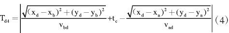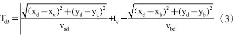 (3)两架飞机从A和B进入是随机变量,当飞机从A口早于B口tc秒进入时,则飞机在经过参考点D的间隔时间Td3为