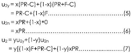 其次,分析税务机关的选择策略。设,选择稽查的税务机关的期望收益为u2y,选择不稽查的税务机关的期望收益为u2n,而税务机关的平均得益为u2: