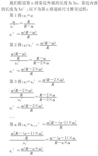的半径为R(单位:m),为获取原材加工参数,接下来推导第n排道砖的尺寸参数。
