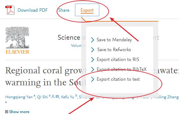 4、以其中一篇文章为例,导出参考文献,选择文本格式导出。