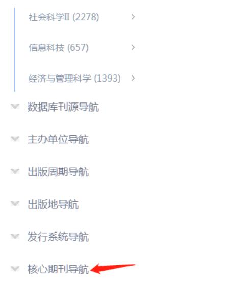 2、在左侧菜单里选择【核心期刊导航】: