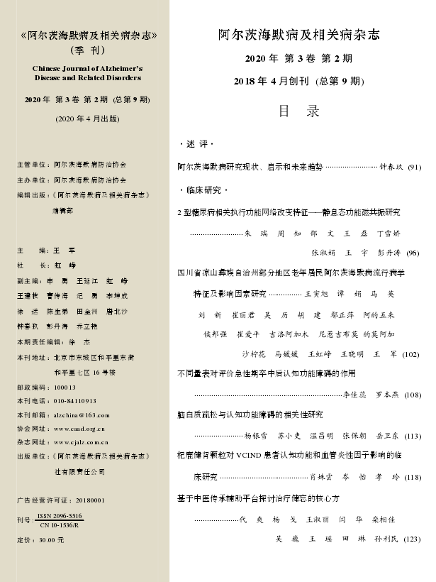 2020-11-13《阿尔茨海默病及相关病》杂志2020年第2期精选题目