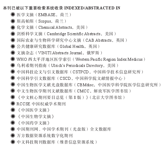 知网收录 万方收录 维普 统计源核心期刊 CSCD期刊收录 中国核心期刊(遴选)数据库 日本科学技术振兴机构数据库 美国化学文摘