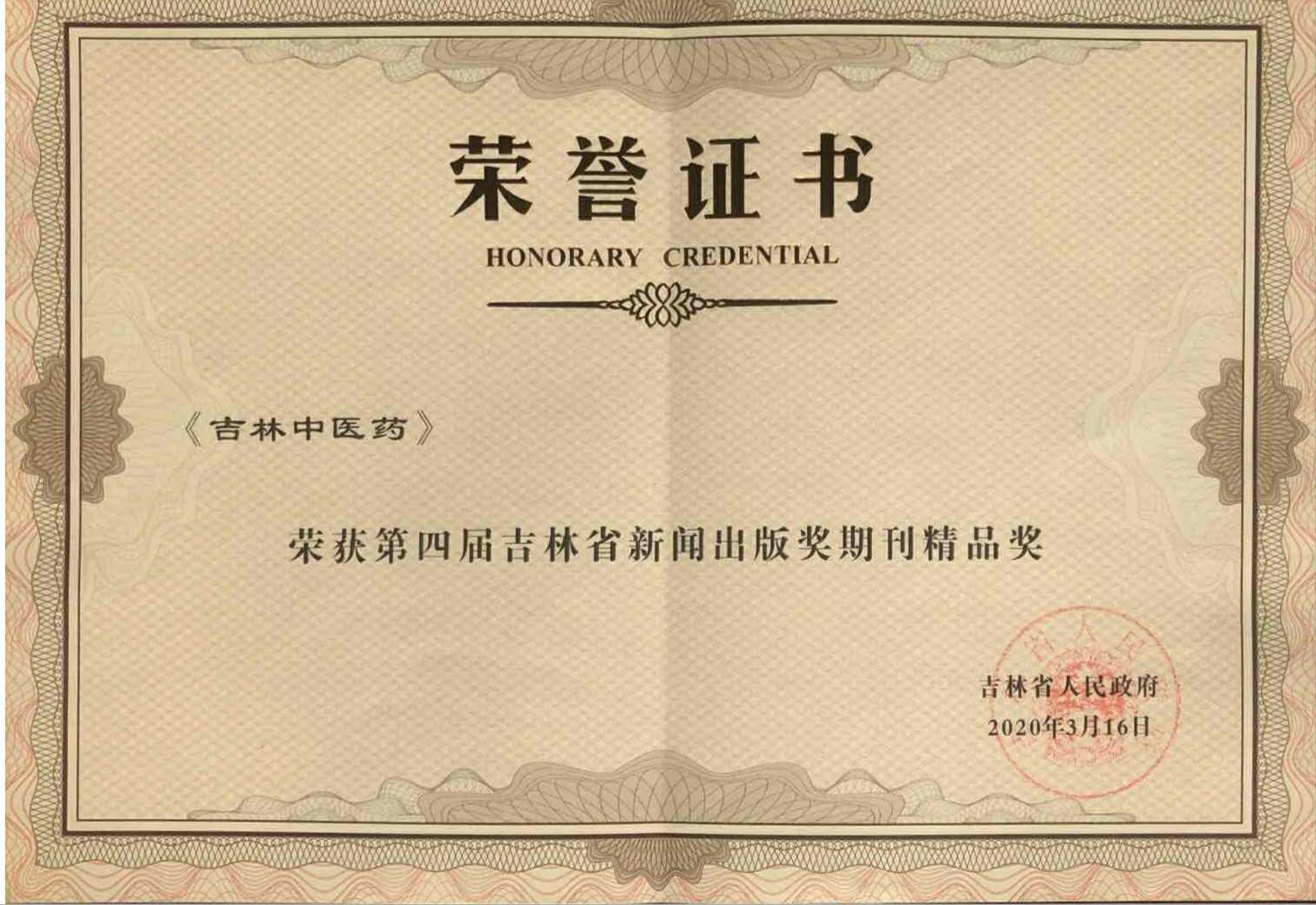2020年3月29日,《吉林省人民政府关于第四届吉林省新闻出版奖的表彰决定》发布,《吉林中医药》获评第四届吉林省新闻出版奖期刊精品奖。这是我校学术期刊史上首次获此奖项。