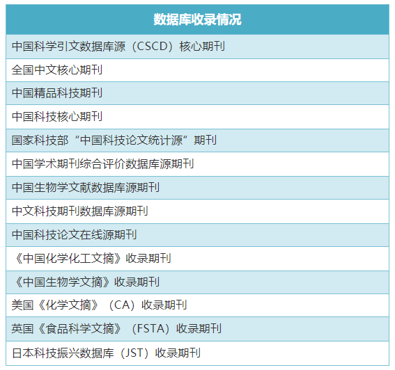 知网收录 万方收录 维普 统计源核心期刊 CSCD期刊收录 中国中文核心期刊 日本科学技术振兴机构数据库 美国化学文摘 EI索引