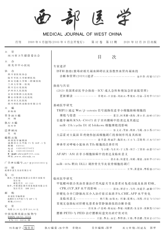 2021-01-302020年《西部医学》杂志第12期要目_重点选题