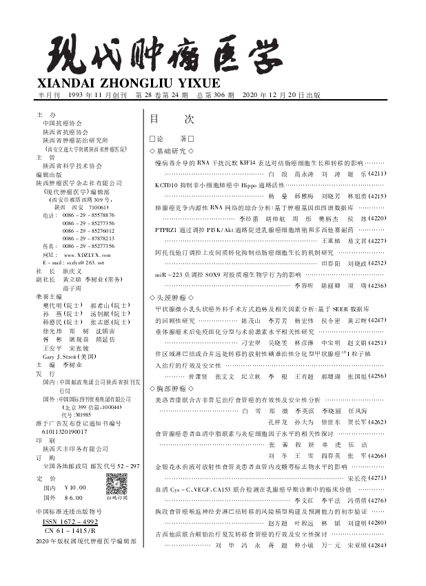 2021-03-082020年《现代肿瘤医学》杂志第12期目录_文章列表