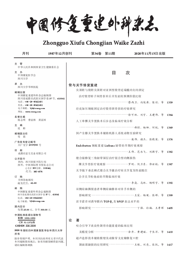 期刊名称:中国修复重建外科杂志