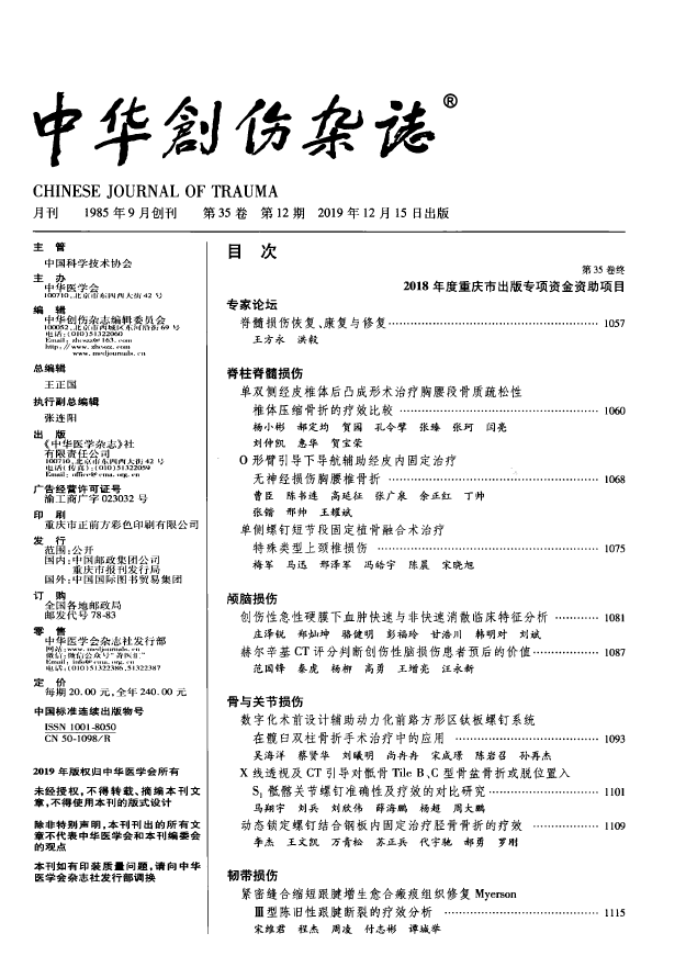 2021-12-02《中华创伤杂志》2020年第12期文章题目精选
