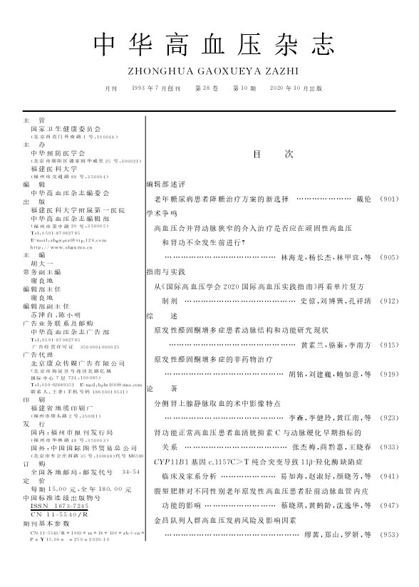2020-11-25《中华高血压杂志》2020年第10期录用题目