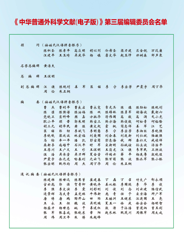 2020-11-11《中华普通外科学文献(电子版)》2020年第1期精选文章目录