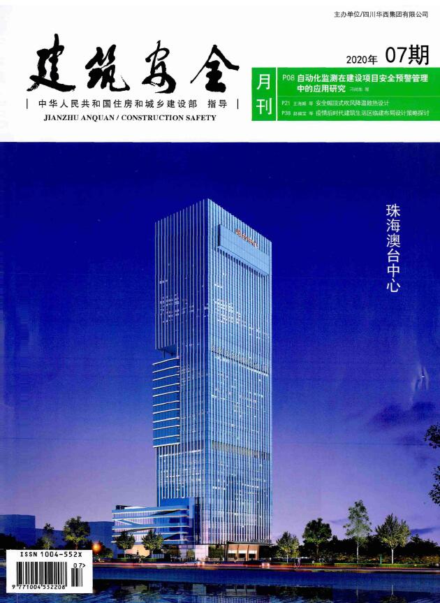 《建筑安全》于1986年创刊,是由四川省住房和城乡建设厅主管,四川华西集团有限公司主办的我国建设领域唯一面向国内、外公开发行的全国优秀科技类期刊。本刊现设有安全管理、施工技术、桥梁隧道施工安全、脚手架与模架安全、机械施工安全、施工管理、施工安全、施工质量、基坑施工安全等30多个栏目,充分发挥传达国家有关安全生产的政策、法规、规范和标准,推动施工安全技术及先进案例防护产品、设施的应用,传递国内外建设信息等职能。