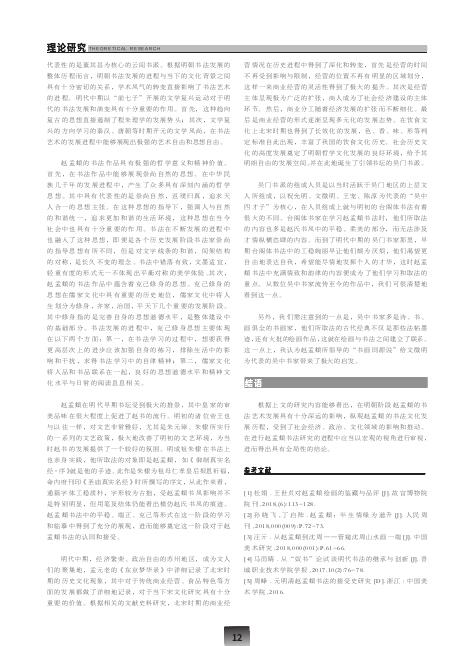 《明代对赵孟頫的接受》赵孟頫在我国的书法历史中具有极强的历史文化地位,是书法历程发展中的里程碑人物。赵孟頫提出的“学古”的书法理论,在元朝产生了极强的社会效应,并且这种影响直接贯穿了整合元朝的思想文化流程与书画创作领域,以至于在明清时期对我国的书法艺术都产生了相应的影响,转变了我国书法艺术的发展风貌。在本文的研究中将对于明朝阶段民众对赵孟頫书法的接受历程进行整合,进而得出相应的原因和结论。