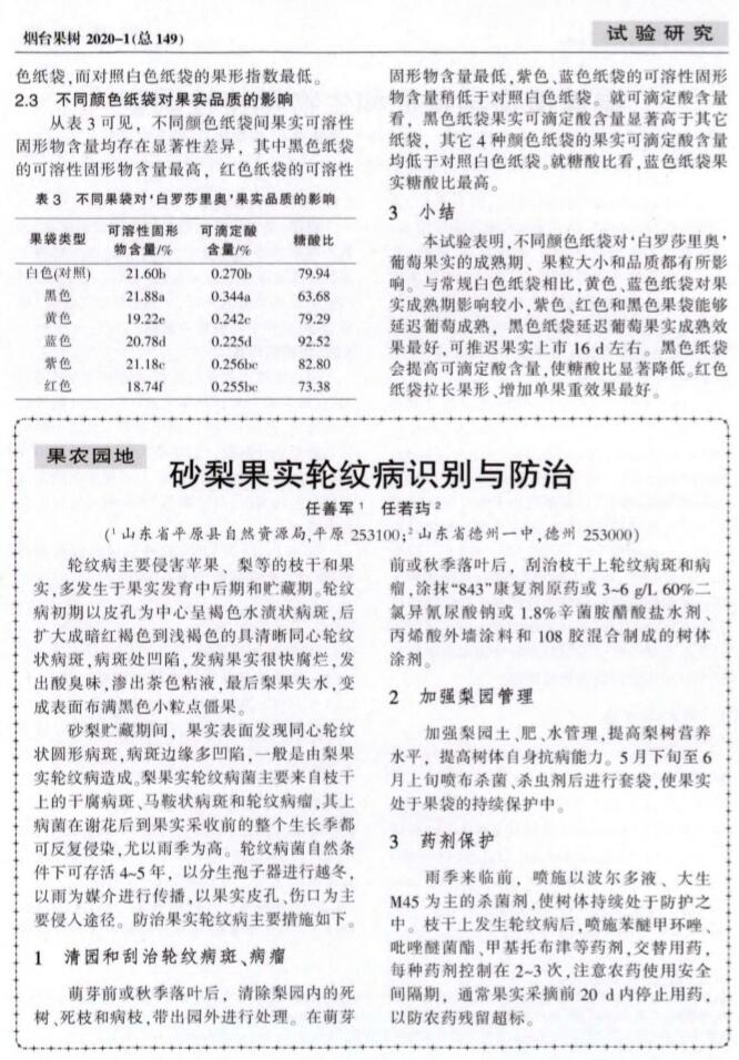 《烟台果树》创刊于1980年,是由烟台农业局主管,烟台农业科学研究院主办的农业综合季刊,本刊现设有技术交流、果农园地、试验研究、专题论坛、种质资源、国外科技进展等栏目,主要刊登栽培管理、果树品种资源、病虫防治、贮藏加工、成果销售等方面的新技术、新信息、新方向,多角度全方位地报道我国果树生产和发展的最新动态,为果农及时传递果品信息,指导果农发展方向。本刊读者对象主要包括果树科研技术人员、农林院校师生和各级果业主管部门工作人员以及基层果农。为广大果树业者提供了经验交流平台,也是苗木、种子、农药、肥料及各种生产机具等信息发布推广的平台。