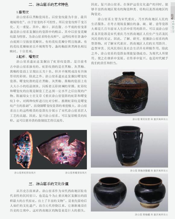 从艺术特色来说,涂山窑系瓷器的釉色变化独树一帜;从文化价值来讲,复兴涂山窑系对于保护文化遗产、传承地域文化有积极作用;从消费需求来看,涂山窑系瓷器能满足现代人们对文化消费、个性消费、情感归属的需求。因此,复兴涂山窑系具有重要的意义。复兴涂山窑系,是机遇,也是挑战。机遇在于人们开始重新重视民族传统工艺,强调文化复兴,而挑战在于现代瓷器从种类、形式、装饰方面都比古代更加丰富,涂山窑系能否发扬自己的特色,在市场中获得自己的一席之地,需要勇气更需要智慧。作为当年养育了几代人的窑系,它不应只是被尘土掩埋,而是应该重新回到人们的视野当中。